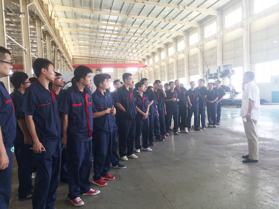 9月19日上午,8:20分由金緯機械(蘇州區域總經理)周兵先生致,歡迎歡迎辭,歡迎各位同學來到金緯機械參觀實習,希望同學們用心珍惜這段實習時間,并對金緯機械的產品創新能夠提出自己的看法與意見。在培訓會上我們還邀請到金緯機械(蘇州區域)副總袁擁軍先生與蘇州金韋爾公司孫峰林總經理,他們為大家詳細介紹了公司的發展與產品創新歷程,幷闡述了整個塑機行業的國內外發展歷史與前景、以及我們身上所肩負的使命:做好民族品牌,做好中國制造!給同學的職業規劃起到了很好的引導作用。 為了同學們能夠更快的融入到金緯公司這個大家庭中來,同學們全程都在車間一線實習,吃飯也和金緯員工一起在金緯食堂用餐。在整個的實習過程當中,同學們被分批帶入五家***公司,在車間中,我們首先對同學們進行了實地安全教育培訓,確保每位同學在學習時的自身安全問題。